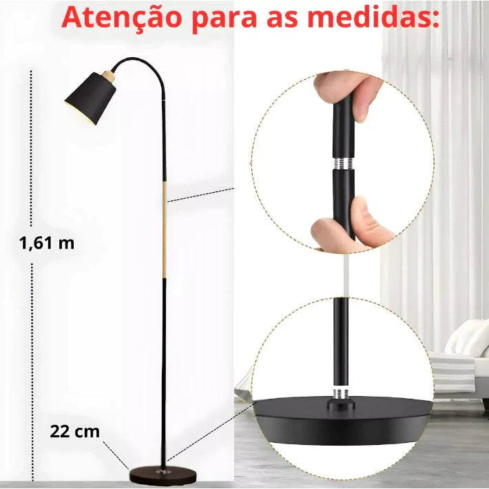 1 x Luminária de Chão Metal e Madeira Lume Prime