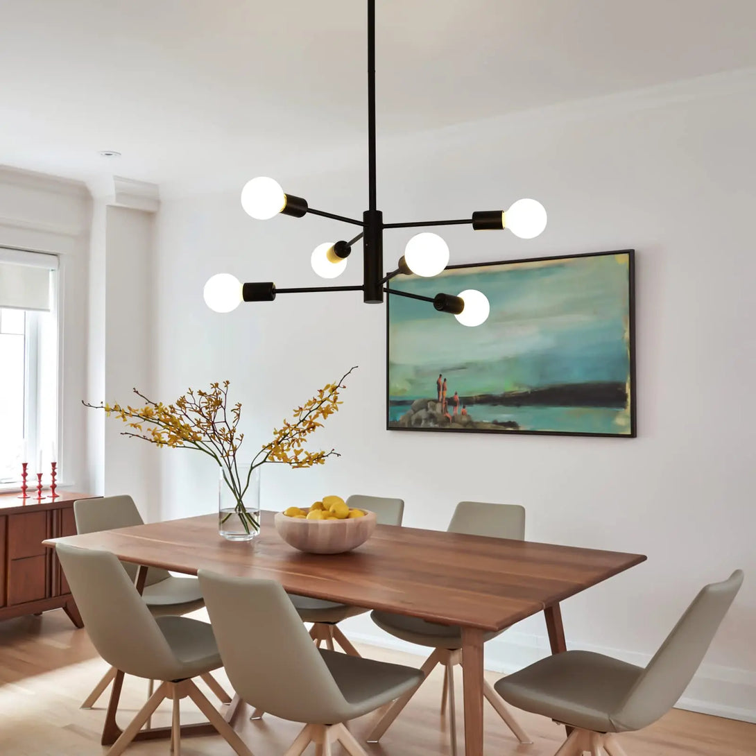 Fabricado com materiais de alta qualidade e um acabamento impecável, este lustre oferece uma iluminação suave e acolhedora, perfeita para criar um ambiente convidativo em sua sala. Seu estilo moderno e minimalista complementa qualquer decoração, tornando-se uma peça central que transforma o espaço com charme e funcionalidade.