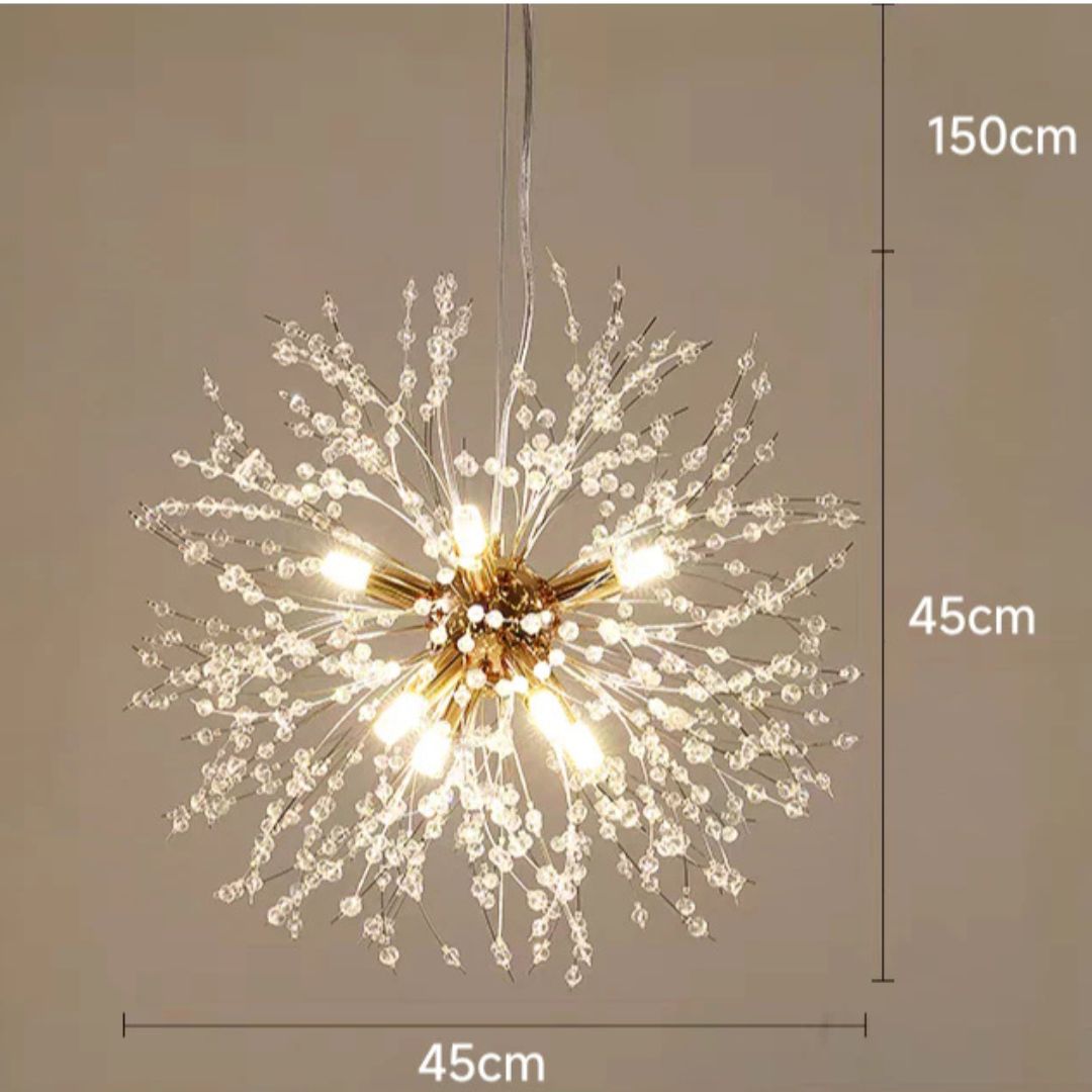 Design Único e Luxuoso: O formato de "dente de leão" ou "fogos de artifício" garante que o lustre seja o ponto focal de qualquer cômodo.
